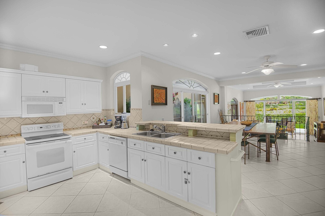 Welcome to one of the most desirable locations in the Colina Community, renowned for its charming colonial architecture and lush surroundings. This beautifully appointed 2-bedroom, 2-bathroom condo is ideally situated on the garden level, offering stunning views of the 1st and 9th fairways of the La Iguana Golf Course, with the rainforest-covered hills as a picturesque backdrop.
