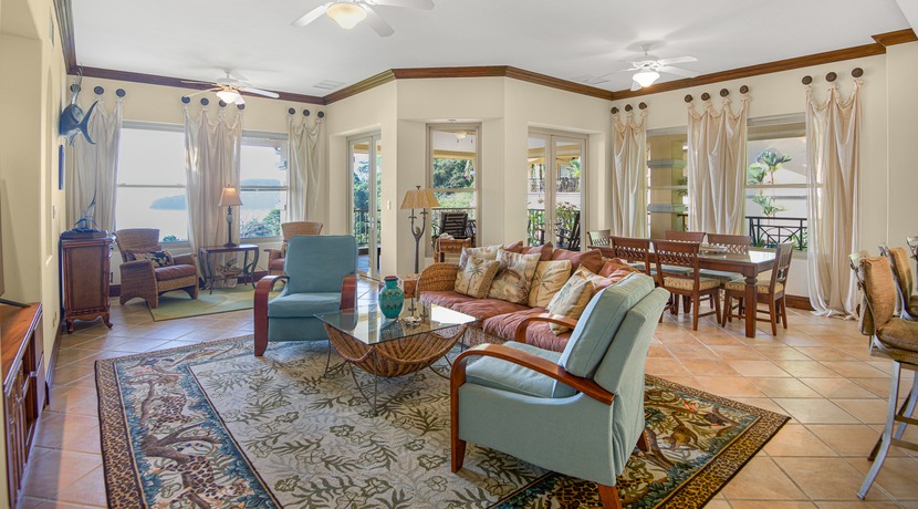Wow—what a view. This residence offers, without question, one of the most spectacular vantage points in all of Los Sueños Resort. From the moment you enter, you are greeted by sweeping, unobstructed views overlooking the marina, the Pacific Ocean, and the lush rainforest stretching to the right.